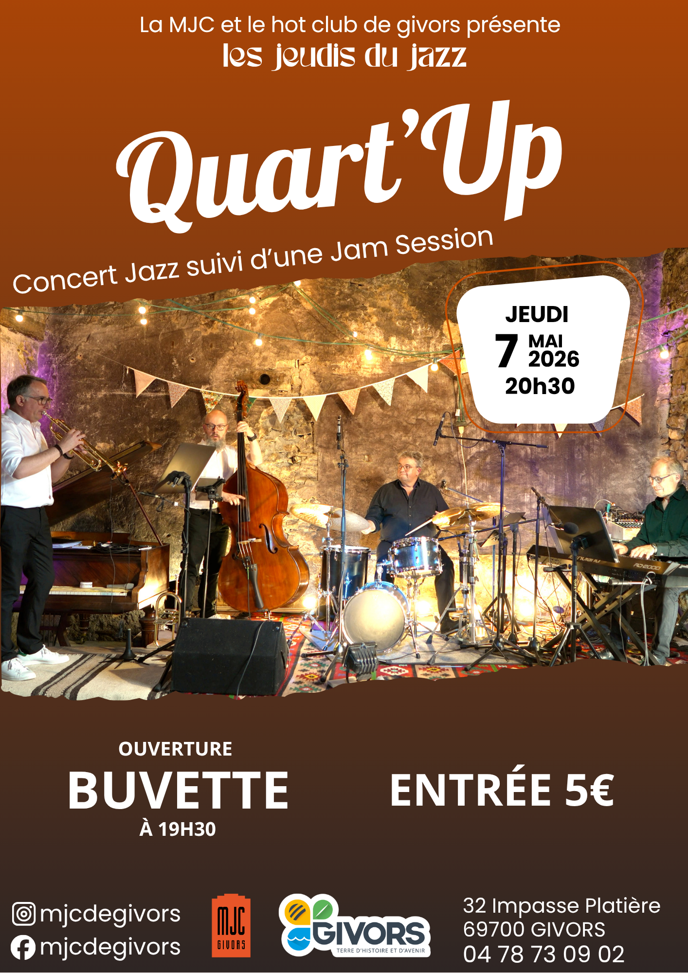 La MJC de Givors propose, en partenariat avec le Hot Club Jazz de Givors, une série de concerts suivis de jam sessions ouvertes à tous.