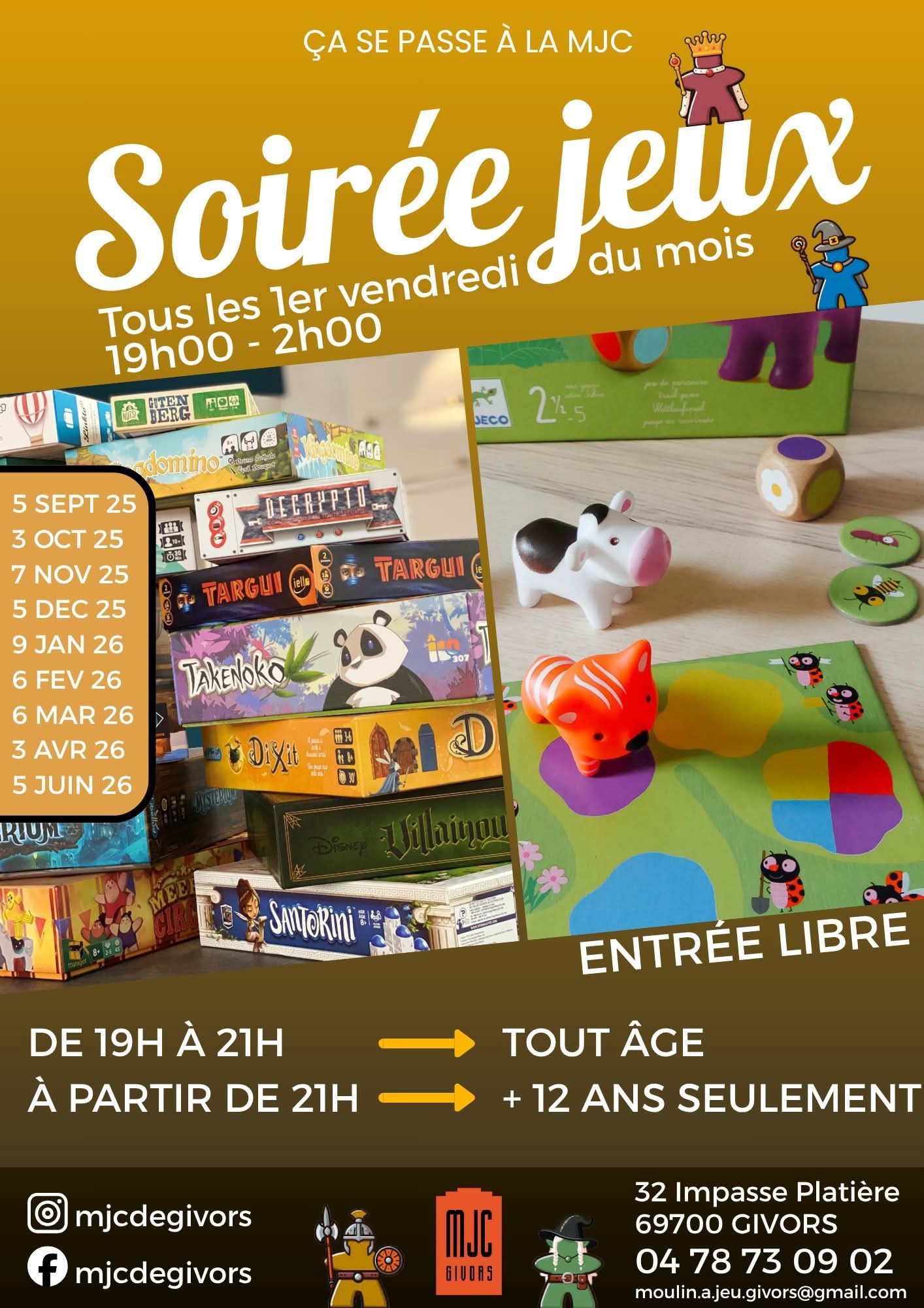 - Soirée Jeux - Tous les 1er vendredi du mois de 19h00 à 01h00 :